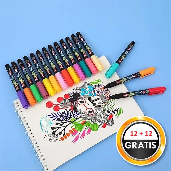 комплект акрилни маркери от 12 части | ACRYLICPENS (1 + 1 БЕЗПЛАТНО)