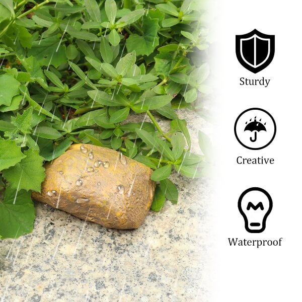 Изработен от висококачествена смола, този камък за скриване на ключове е проектиран да издържа на всякакви метеорологични условия, като предпазва резервния ви ключ от дъжд, вятър, сняг и слънце.
