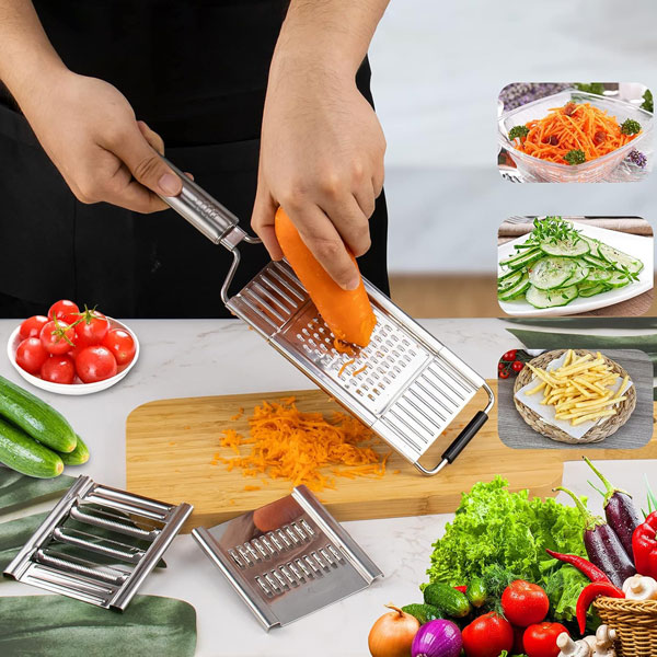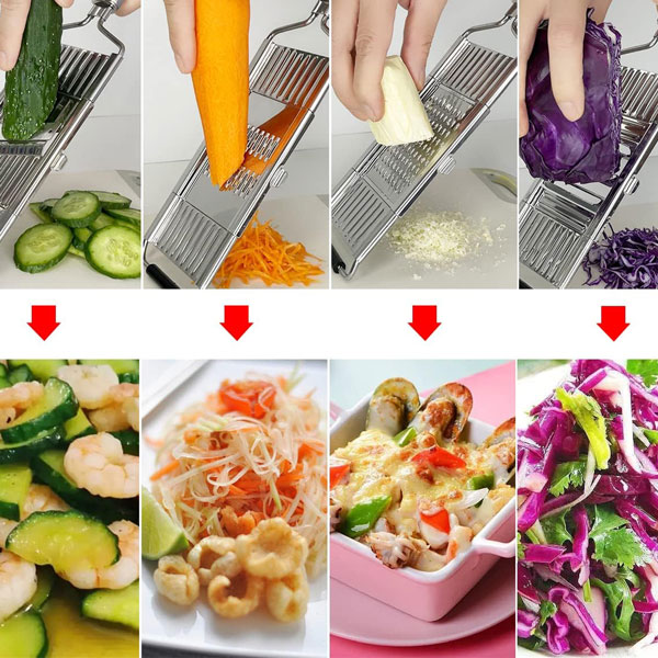 🧑‍🍳 Многофункционален дизайн: Режете, настъргвайте и нарязвайте с един инструмент—идеален за салати, пържени картофи и бързи ястия.