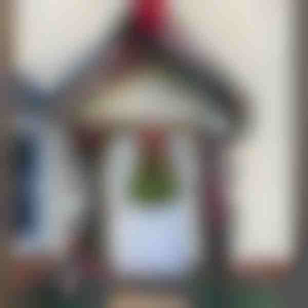 Изработена във формата на коледна елха с класически сезонни цветове – идеална за входове или уютни интериори.