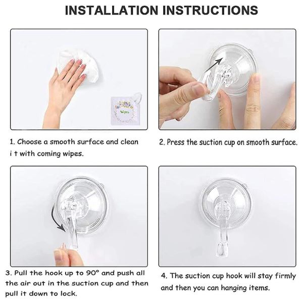 Тези здрави всмукателни кукички могат здраво да залепват за прозорци, огледала, стъкло, метал, плочки, пластмаса и различни други гладки, плоски повърхности.