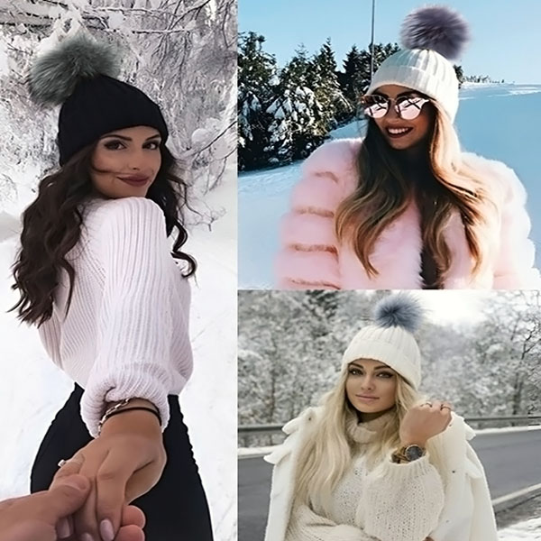 Топла плетена шапка с помпон | GLACIA