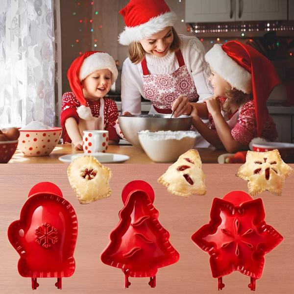 Добавете уникален, празничен щрих към вашите пайове с три вълнуващи форми – снежинка, ръкавица и коледна елха.
