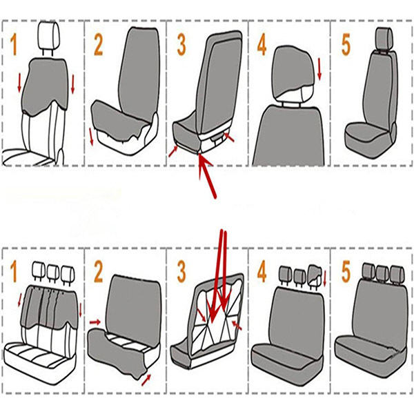 Калъфи за задните седалки: 2 броя (седалка и облегалка) за всички задни седалки заедно